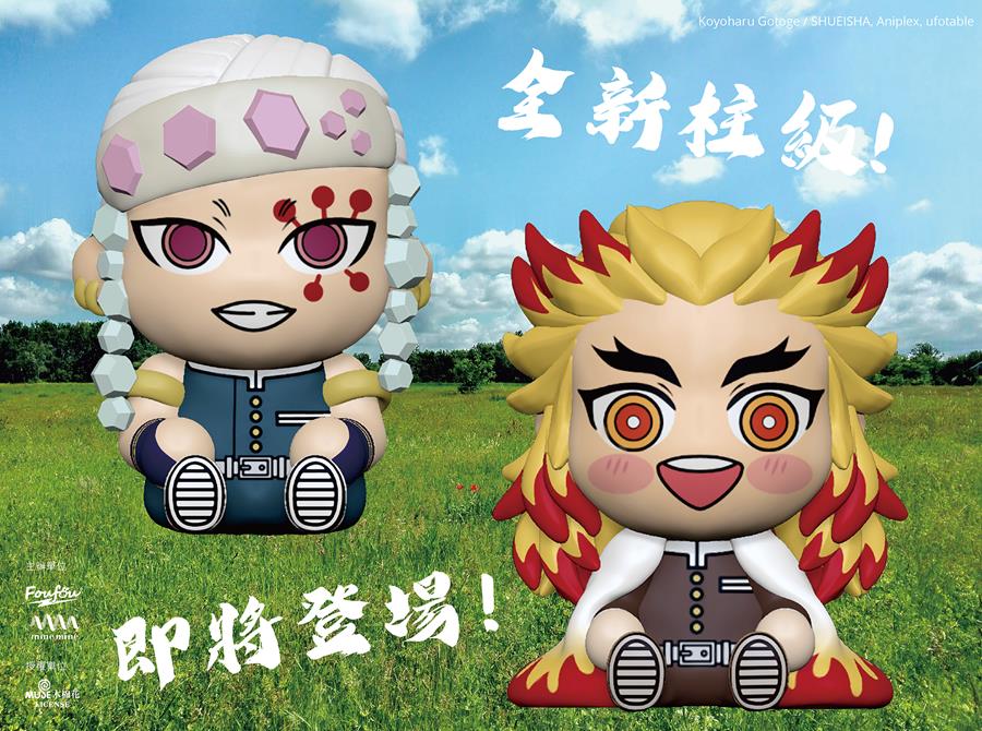ฟิกเกอร์เป่าลมของทั้งสี่ตัวละครหลักได้กลับมาอีกครั้ง! ทั้งเสาหลักเพลิงเรนโกคุ เสาหลักเสียง อุซุย เท็นเก็น (ที่จะปรากฏตัวในภาคย่านเริงรมย์) จะมาปรากฏมาในรูปแบบของฟิกเกอร์เป่าลม