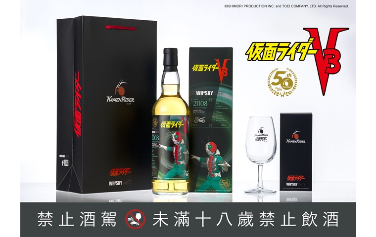 WHISKY TASTE มีการผลิตร่วมกับมาสค์ไรเดอร์ ในการออกสินค้าแบรนด์วิสกี้อันเป็นผลงานชุดแรกที่มีการออกร่วมกับมาสค์ไรเดอร์ V3
